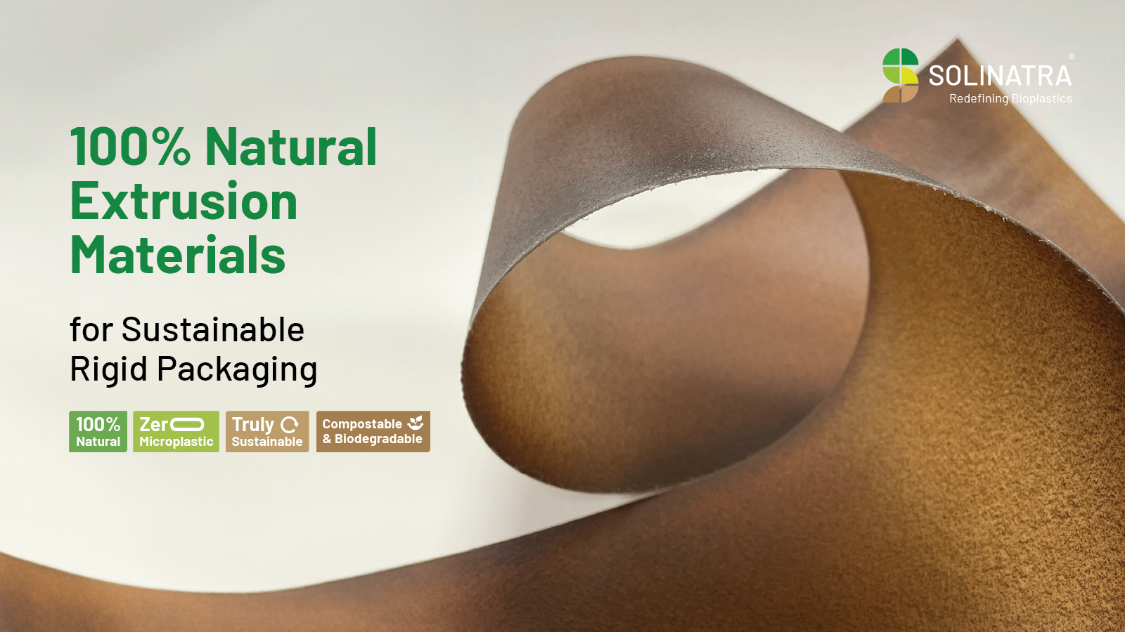 Solinatra introduces two extrusion-grade materials that meet the growing demand for truly sustainable rigid packaging. Universal Light X and Universal Dark X are 100% natural, plant-based, compostable, fully biodegradable designed for sheet extrusion applications such as trays, punnets, plant carriers and more.