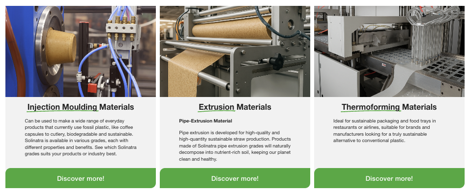 Solinatra is #MakesItAlright for processing because it is designed to work with manufacturing equipment that producers already rely on. Brands should not have to reinvent production lines or adopt complicated new methods to switch away from plastic. Solinatra is compatible with standard industrial processing methods, including injection moulding, thermoforming, and extrusion, making it scalable and practical for real-world manufacturing.
