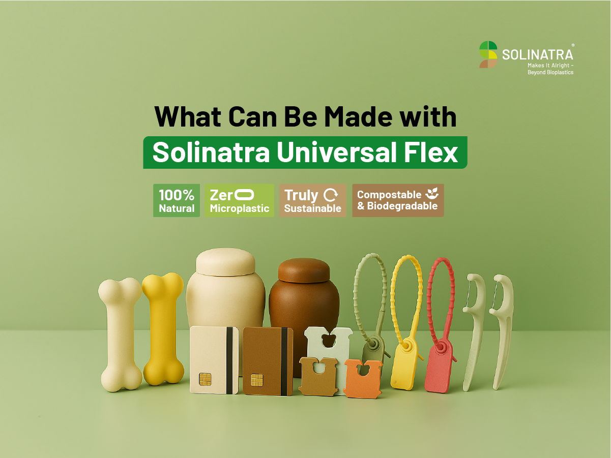 Solinatra Universal Light and Dark Flex are 100% natural, fully compostable, and biodegradable materials made for injection moulding. Engineered for strength and flexibility, they offer a sustainable solution for manufacturers seeking high-performance biobased materials that leave zero microplastics behind.